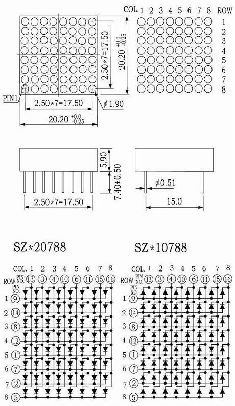 描述:1.9mm 8*8點(diǎn)陣共陽